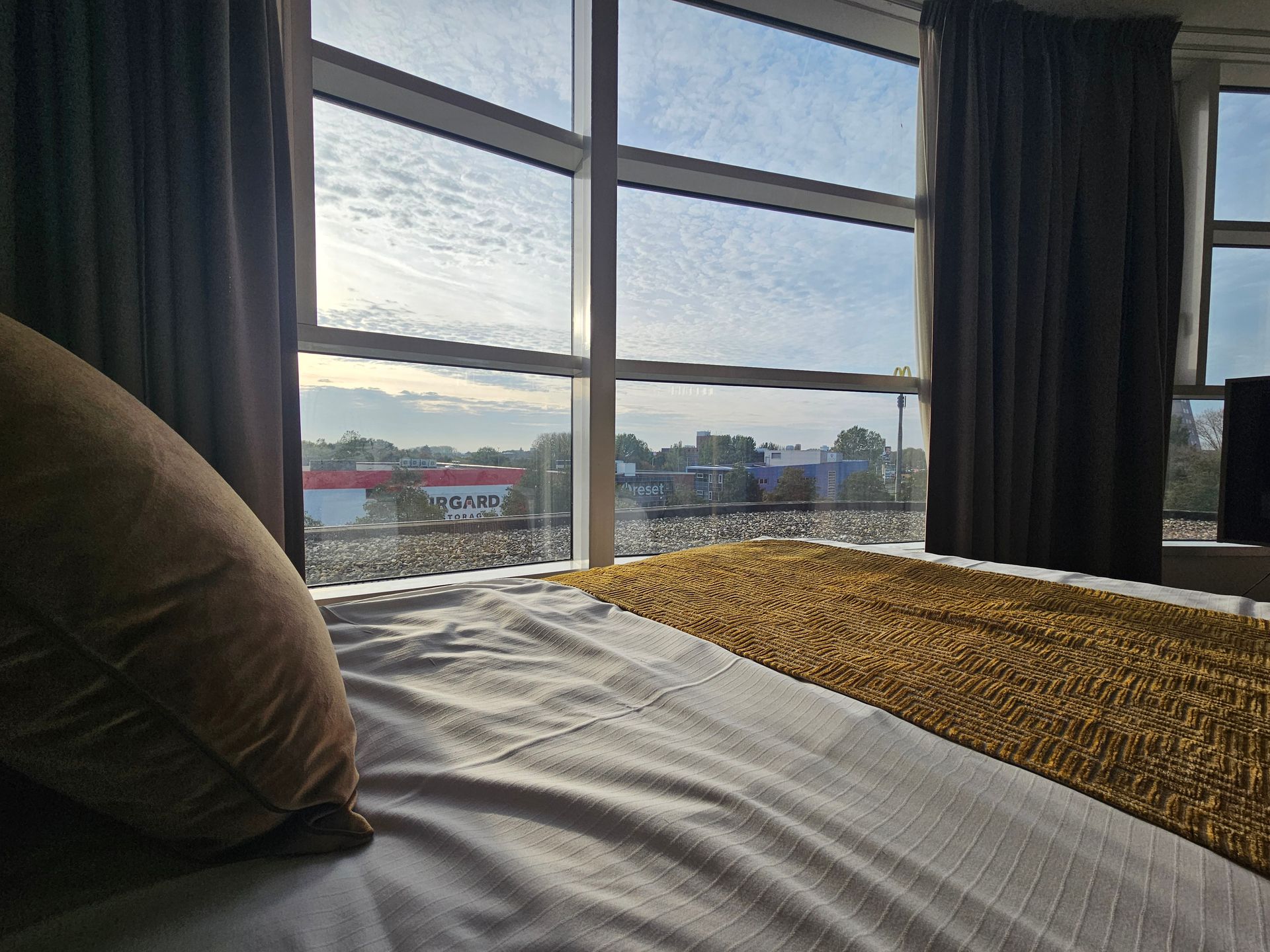 We left for Delft around 3 PM on a Sunday, and I could tell my daughter was super excited—chatting non-stop and refusing to nap in the car, which she normally does. It’s about an hour’s drive from our home, so really doable. As soon as we got near the hotel, we spotted the big yellow M, and you know what that means! Yep—McDonald’s for dinner. I don’t think I’ve ever stayed this close to a McDonald’s. Back when I lived in Purmerend with my parents, I had to bike at least seven minutes. This one? Three-minute walk. Perfect when you’re traveling with a little one.